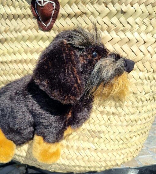 Ziegfeld große Korbtasche mit Rauhaardackel Oskar, mit Ledergriffen und Innenledertasche